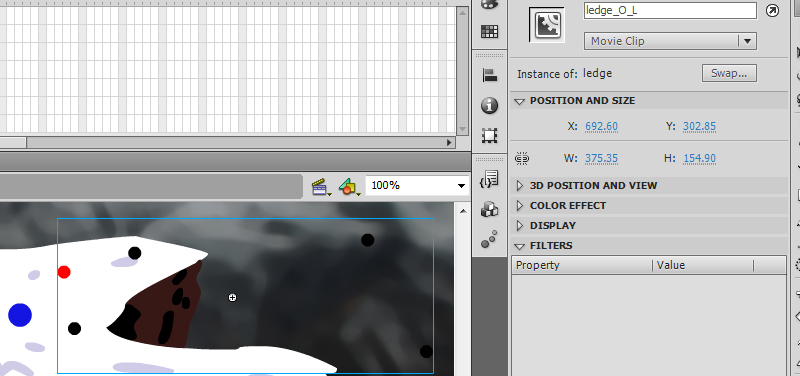 You don't need to put usableAreas in your movie clips, but I recommend it. Keep in mind that Flash considers the hit area of any movie clip to be the bounding box around the entire thing - including all those dots and lines that I'll go over in a minute. Without a usableArea, the hit area will extend well beyond the visible part of your movie clip most of the time.
